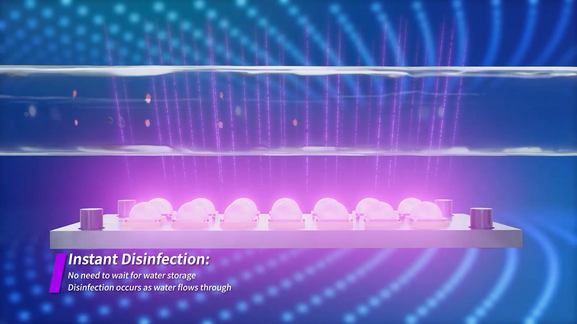يستخدم تطهير المياه UVC الضوء فوق البنفسجي في نطاق الطول الموجي للأشعة فوق البنفسجية (200-280 نانومتر) لتعطيل الحمض النووي و RNA للكائنات الحية الدقيقة مثل البكتيريا والفيروسات والبروتوزوا. هذا يمنعهم من إعادة إنتاج وتسبب الالتهابات ، وتحييد مسببات الأمراض بشكل فعال دون إضافة مواد كيميائية. هذه العملية مادية ، مما يجعلها طريقة تطهير خالية من المواد الكيميائية مناسبة لتطبيقات المياه المختلفة.